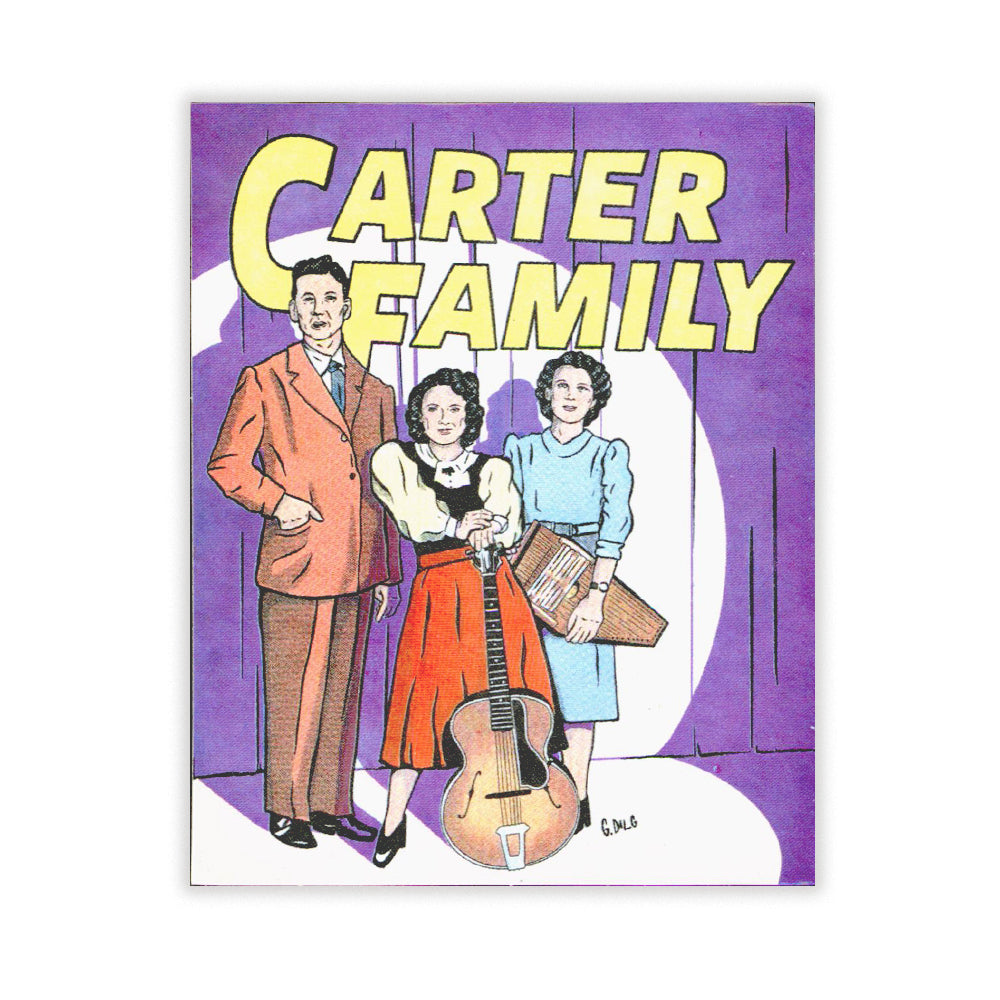 Honor the first family of country music with this delightful sticker of the Carter Family, crafted by Gina Dilg. A must-have for fans of traditional music. Approx 4 in x 4 in. Collect them all!