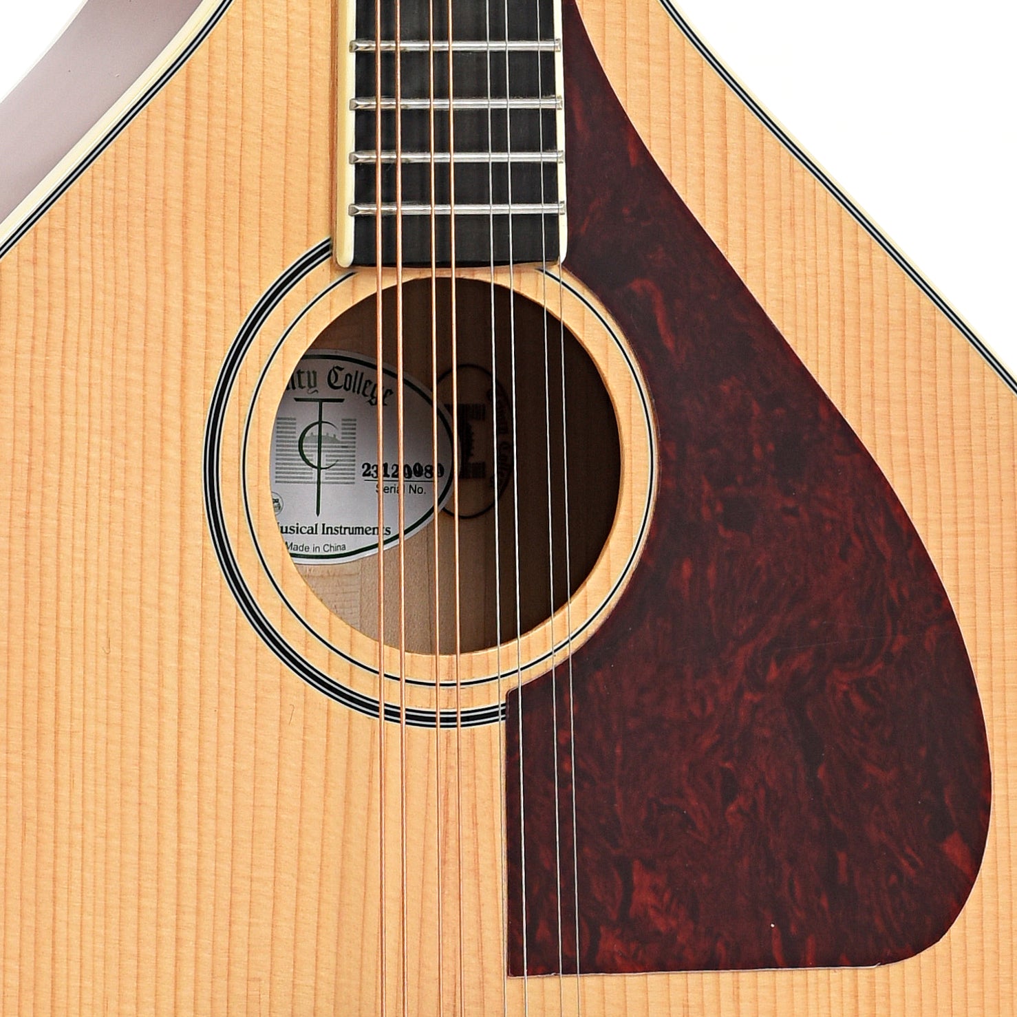 The Trinity College TM-375 bouzouki provides rich, shimmering sound and a distinct, Celtic-inspired look. Several tunings are possible, but one of the most common is gG-dD-AA-EE, one octave below a mandolin.