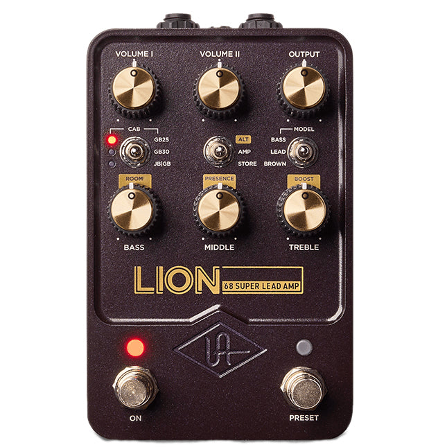 Introducing the UAFX Lion '68 Super Lead Amp Emulation pedal with Bluetooth capabilities. Expertly crafted with powerful dual-engine processing and UAD modeling, it delivers dead-on tones of three distinct 100-watt plexi amplifiers. With the ability to replace your amp rig and go direct to front-of-house or record tracks into your DAW, experience the inspiring, album-ready tones of three expertly miked "golden unit" 100-watt plexi amp heads with unparalleled sonic realism.