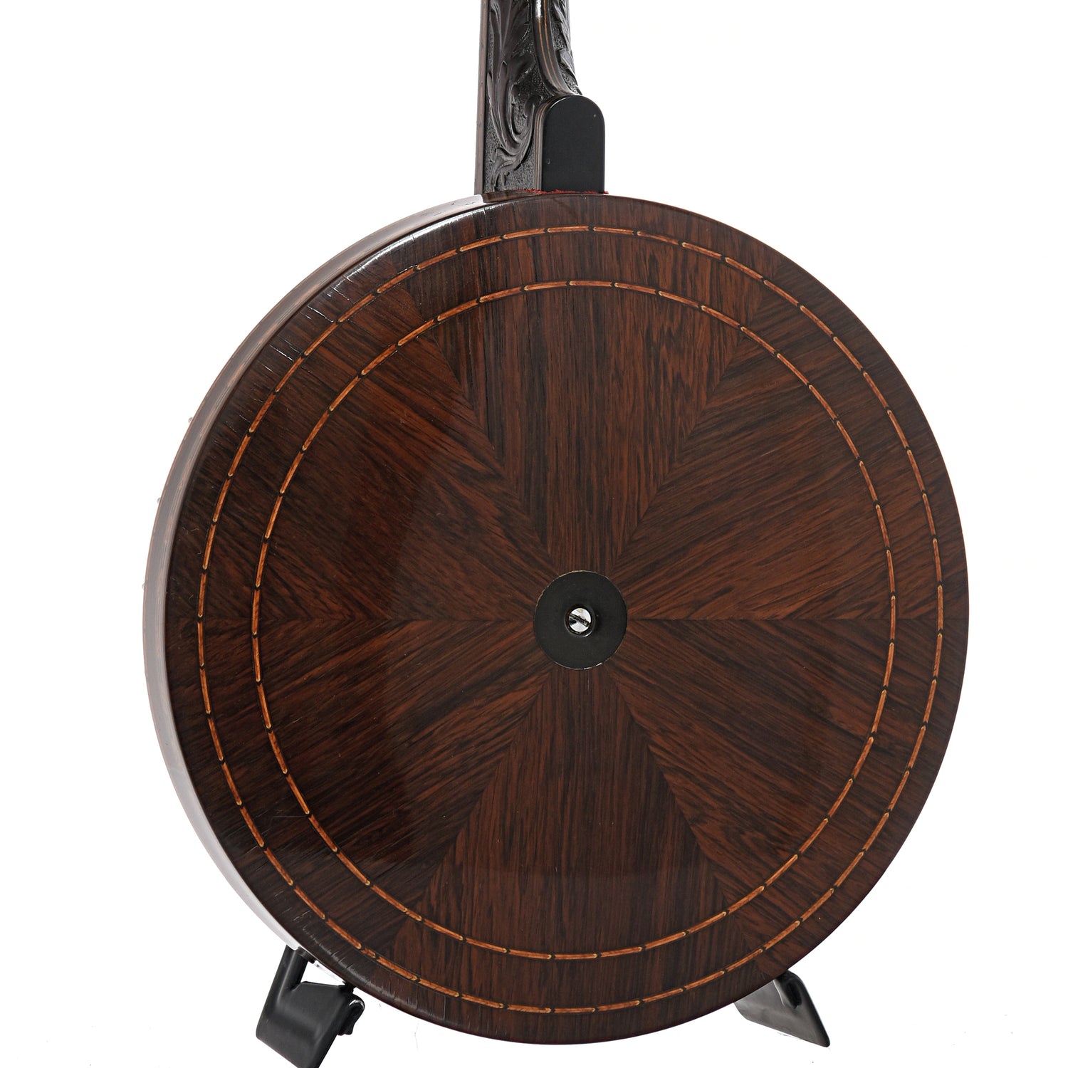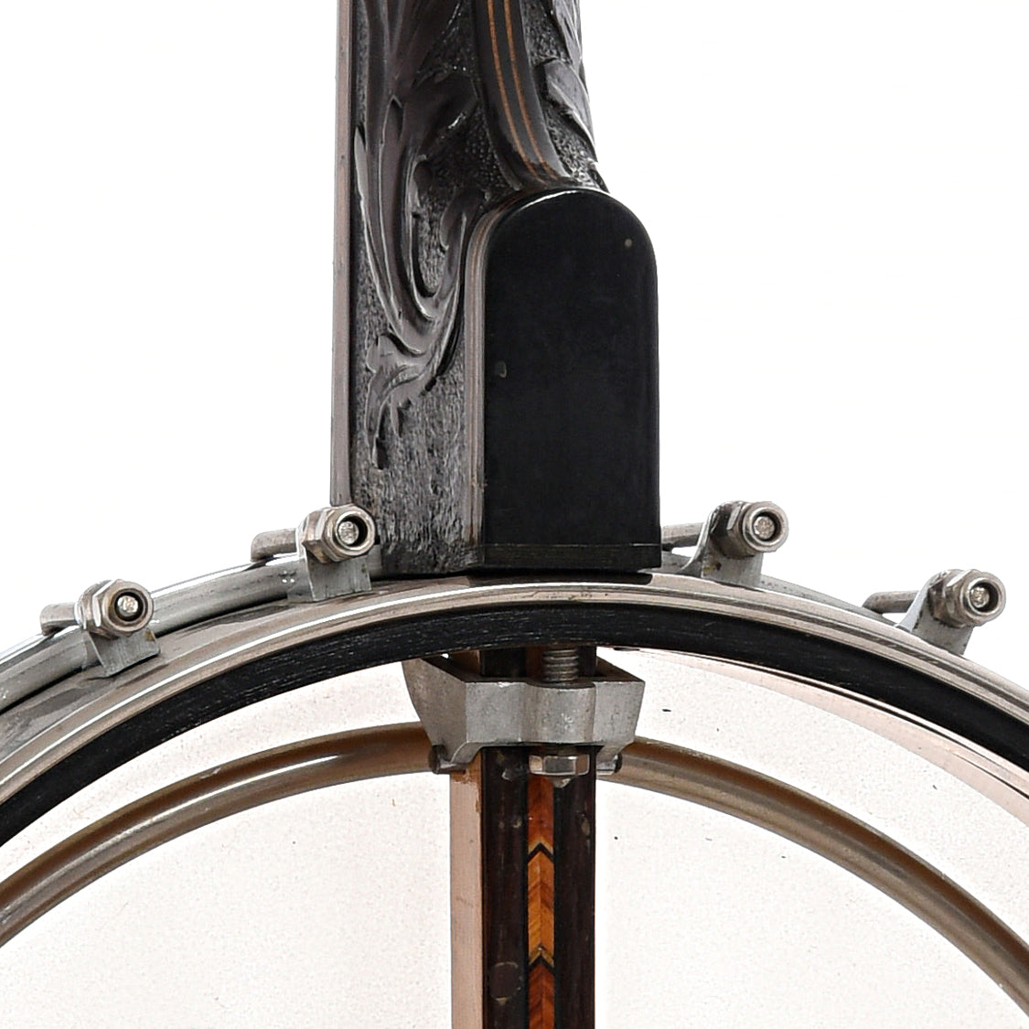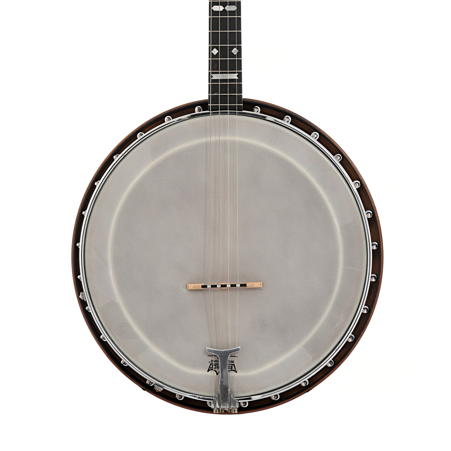 Fred Van Eps was a famous banjo player in his day. This is the fanciest Van Eps banjo we have seen. Brazilian rosewood neck and carved heel. This one also features a fancy resonator. The models that bear his name were designed by Fred and marketed by Lyon & Healy in Chicago. With rough semi-hardshell case.