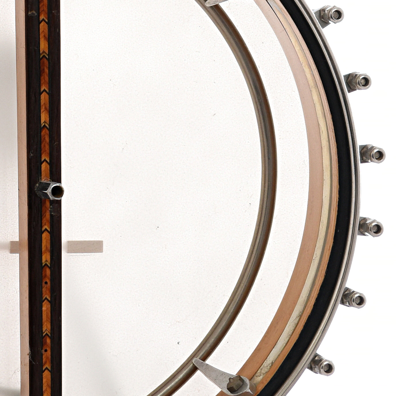 - Arched tone ring on metal struts that fasten to internal bracket band on rim