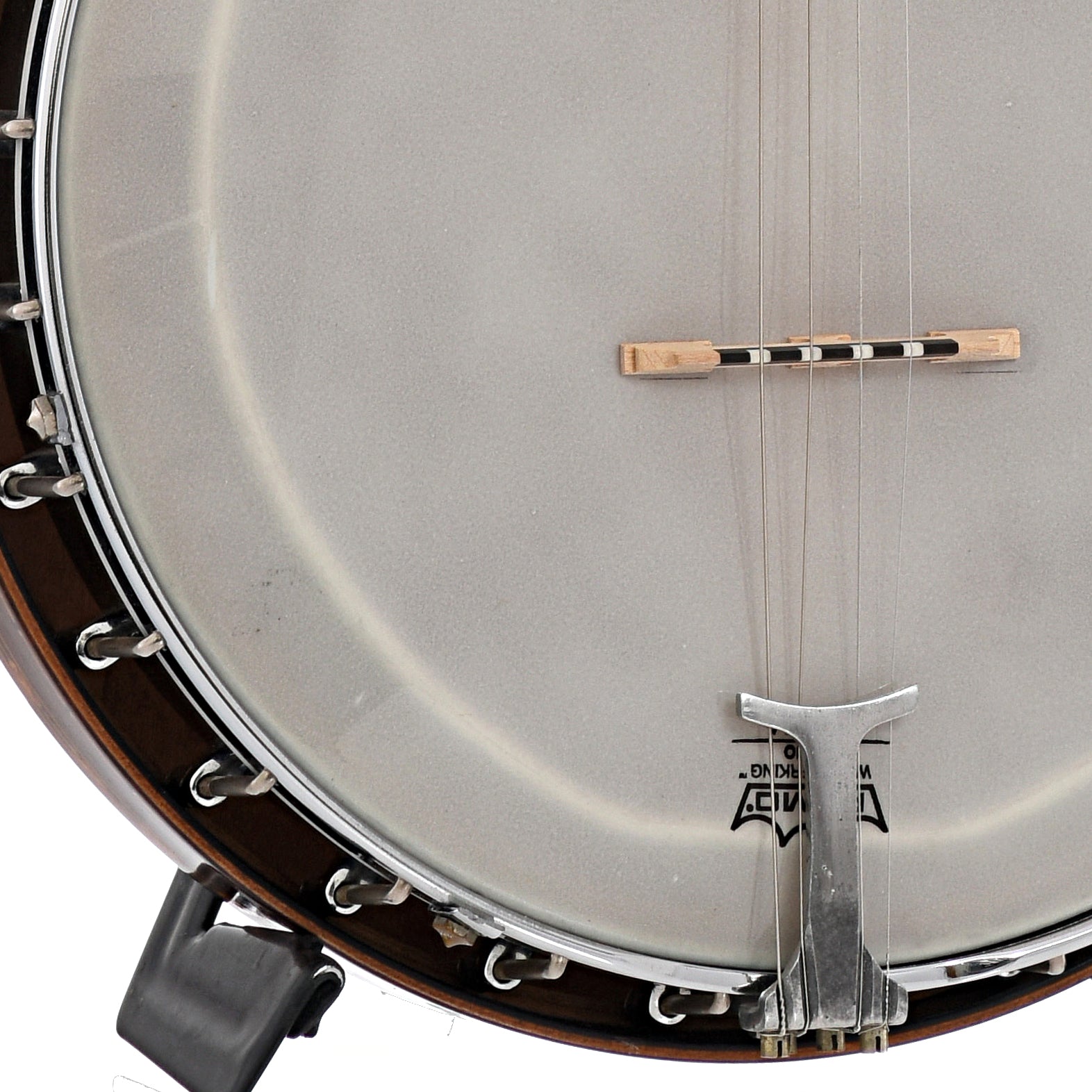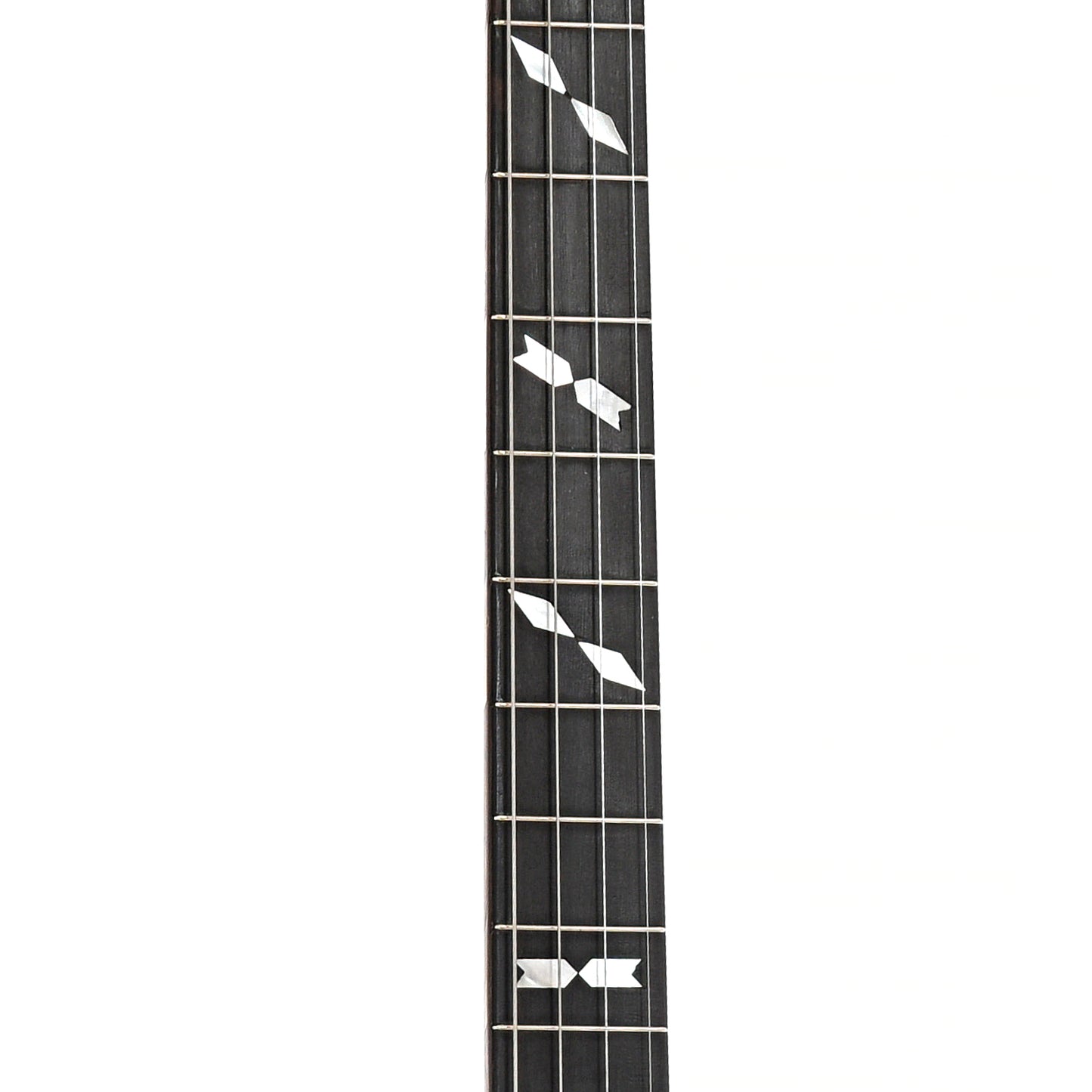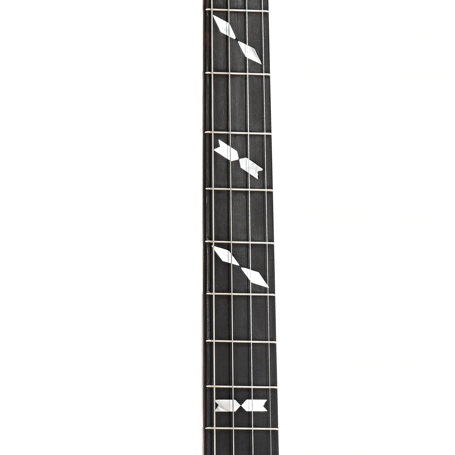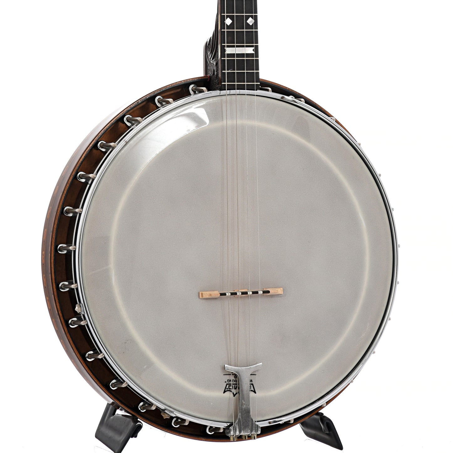 Fred Van Eps was a famous banjo player in his day. This is the fanciest Van Eps banjo we have seen. Brazilian rosewood neck and carved heel. This one also features a fancy resonator. The models that bear his name were designed by Fred and marketed by Lyon & Healy in Chicago. With rough semi-hardshell case.
