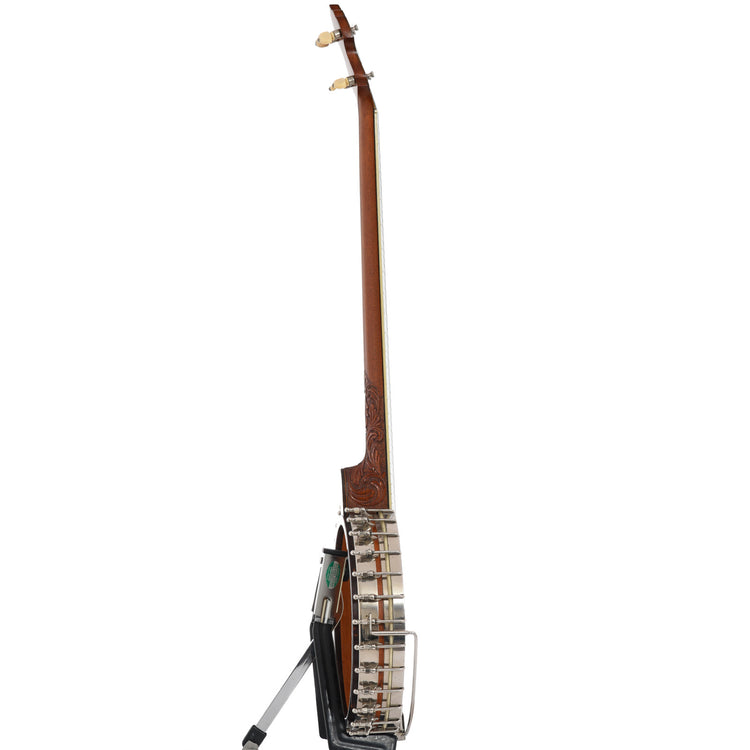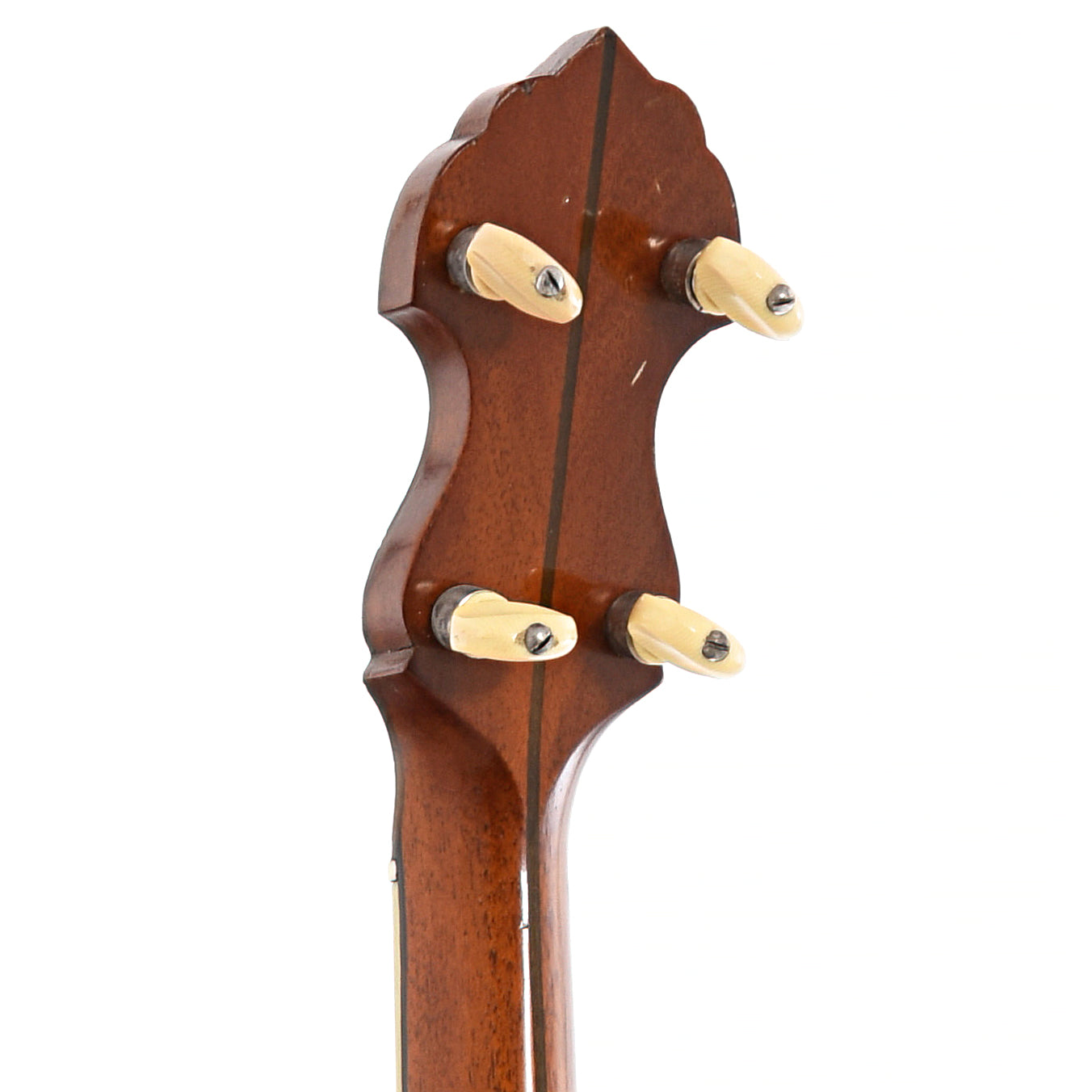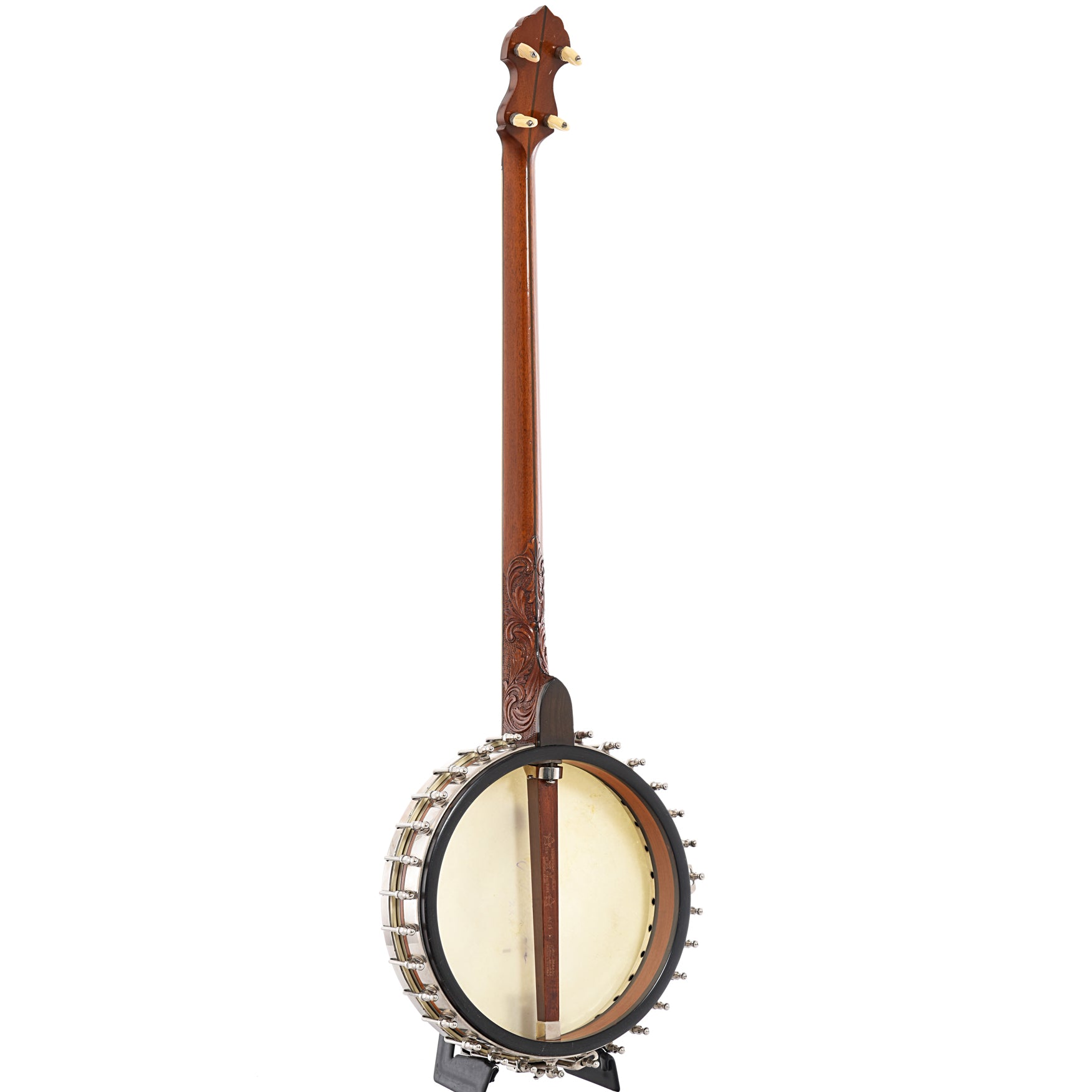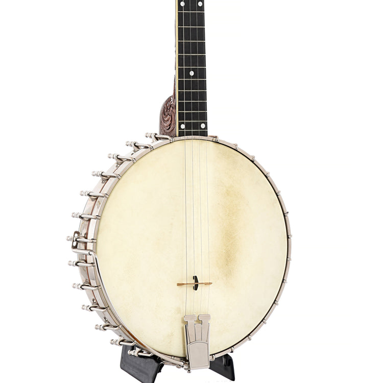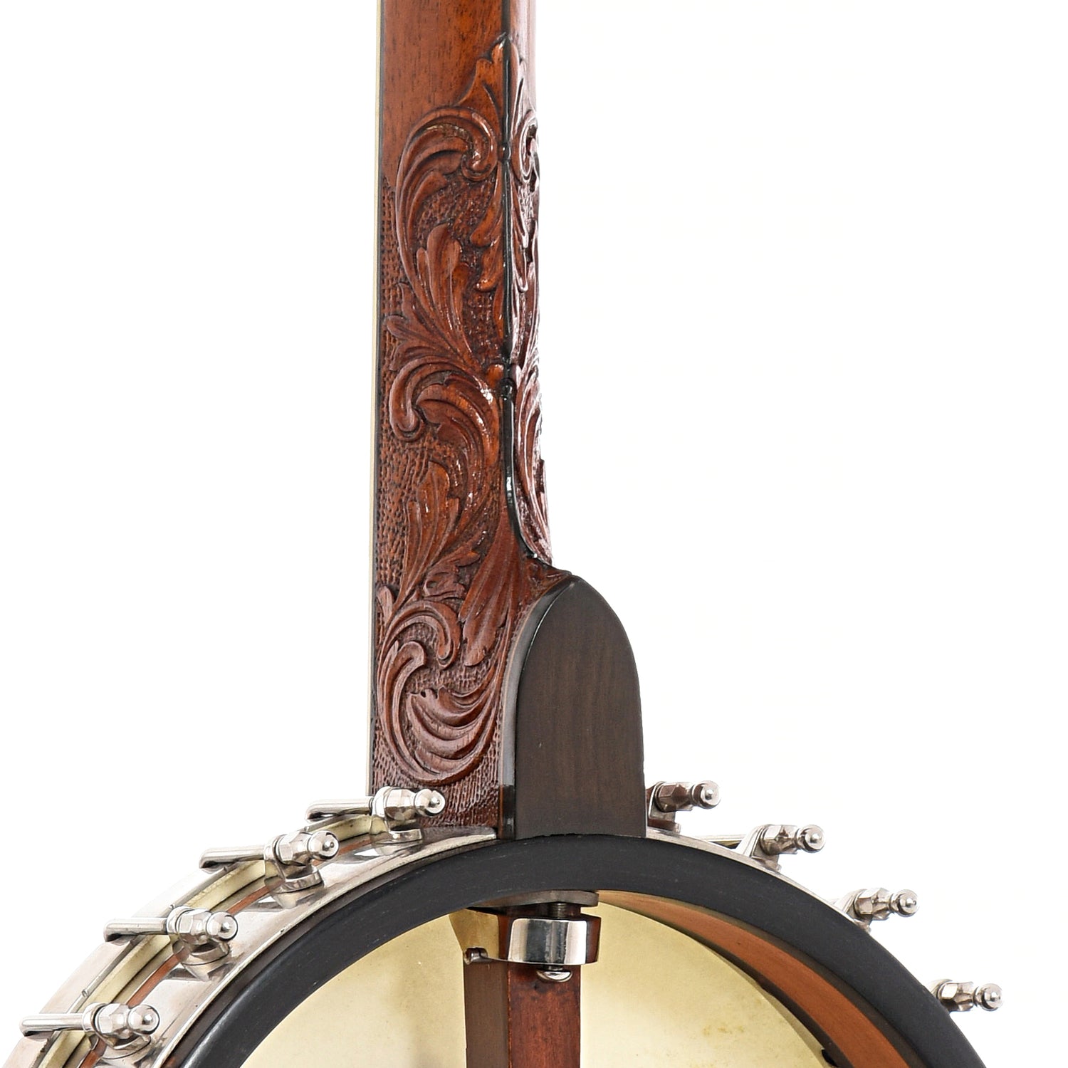 This lovely plectrum banjo from Boston sports a skin head and features a 2-piece mahogany neck with exquisite carved heel, Tubaphone tone ring, Presto tailpiece, and Grover Pat. Pend. tuners with ivoroid buttons. Work is needed to fully return it to its jazz-age glory