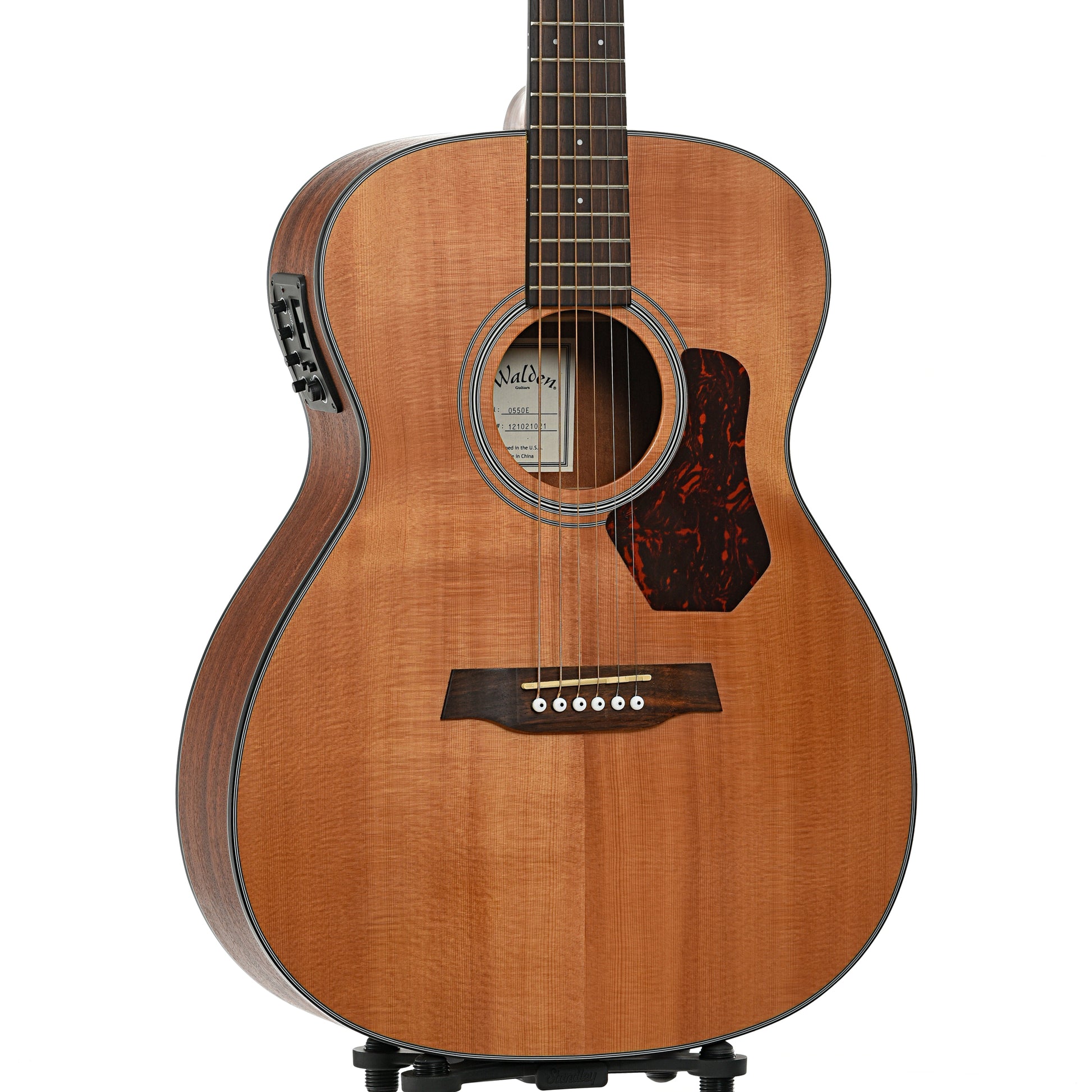 An affordable guitar to get you strumming, this Walden features a solid spruce top with Low-Mass bracing, mahogany back, sides and 14-fret neck, and a rosewood bridge and fingerboard. Equipped with a factory pickup and EQ system. Hard shell case. Import.