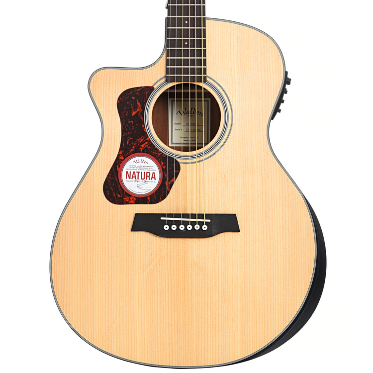 The Walden Natura G550RCEL left-handed grand auditorium model has a solid spruce top and mahogany back and sides plus an ergonomic armrest bevel for player comfort. Its voice is both focused and harmonically complex. It has the volume of a full sized instrument and the comfort of a smaller body. Simple appointments and Walden's MG-20 electronics complete the package. A lifetime warranty sets it apart from other imported guitars. A solid lifetime warranty sets it apart from the competition.