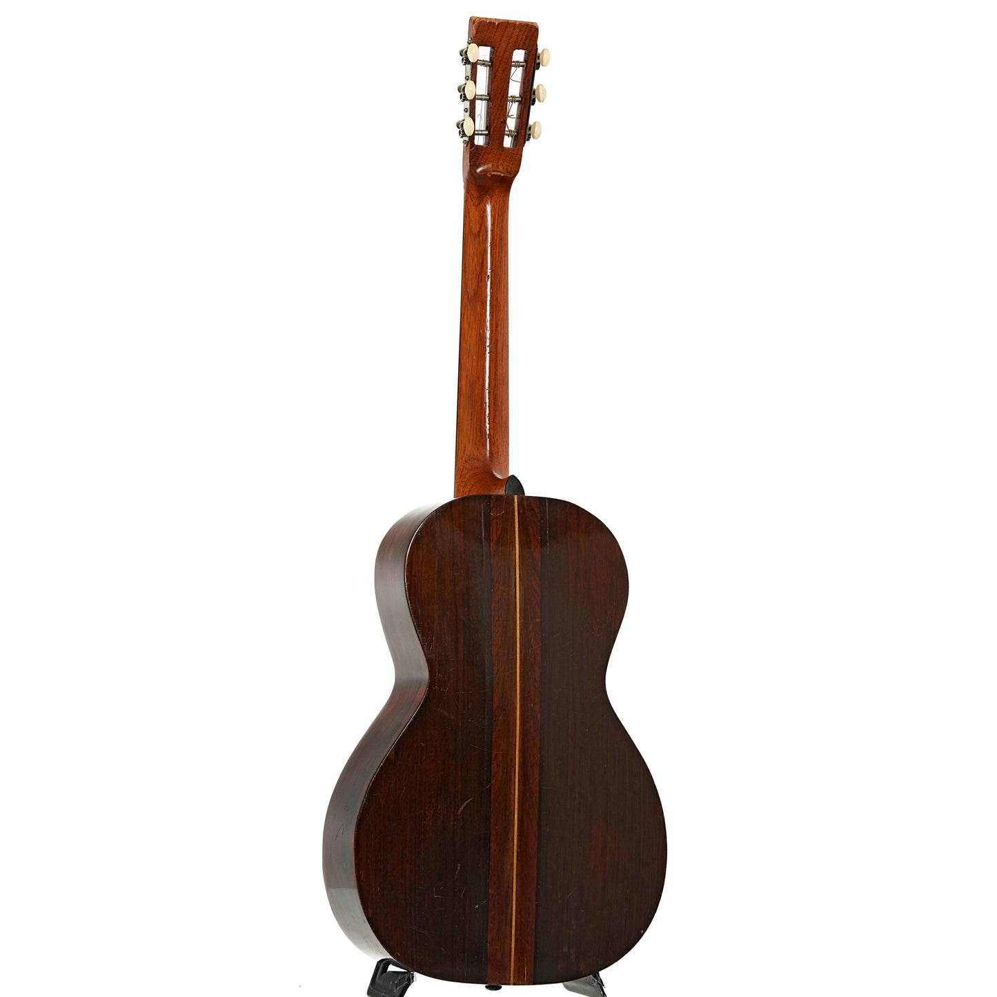 From the late 19th century comes this unmarked Washburn 102 parlor guitar, quite the historical piece, featuring a ladder-braced bound spruce top, and solid Brazilian rosewood back and sides. It has a 12-fret mahogany neck, and ebony fingerboard and bridge. Replacement 3-on-a-strip tuners. A prime candidate for restoration! NO CASE. Made in USA.