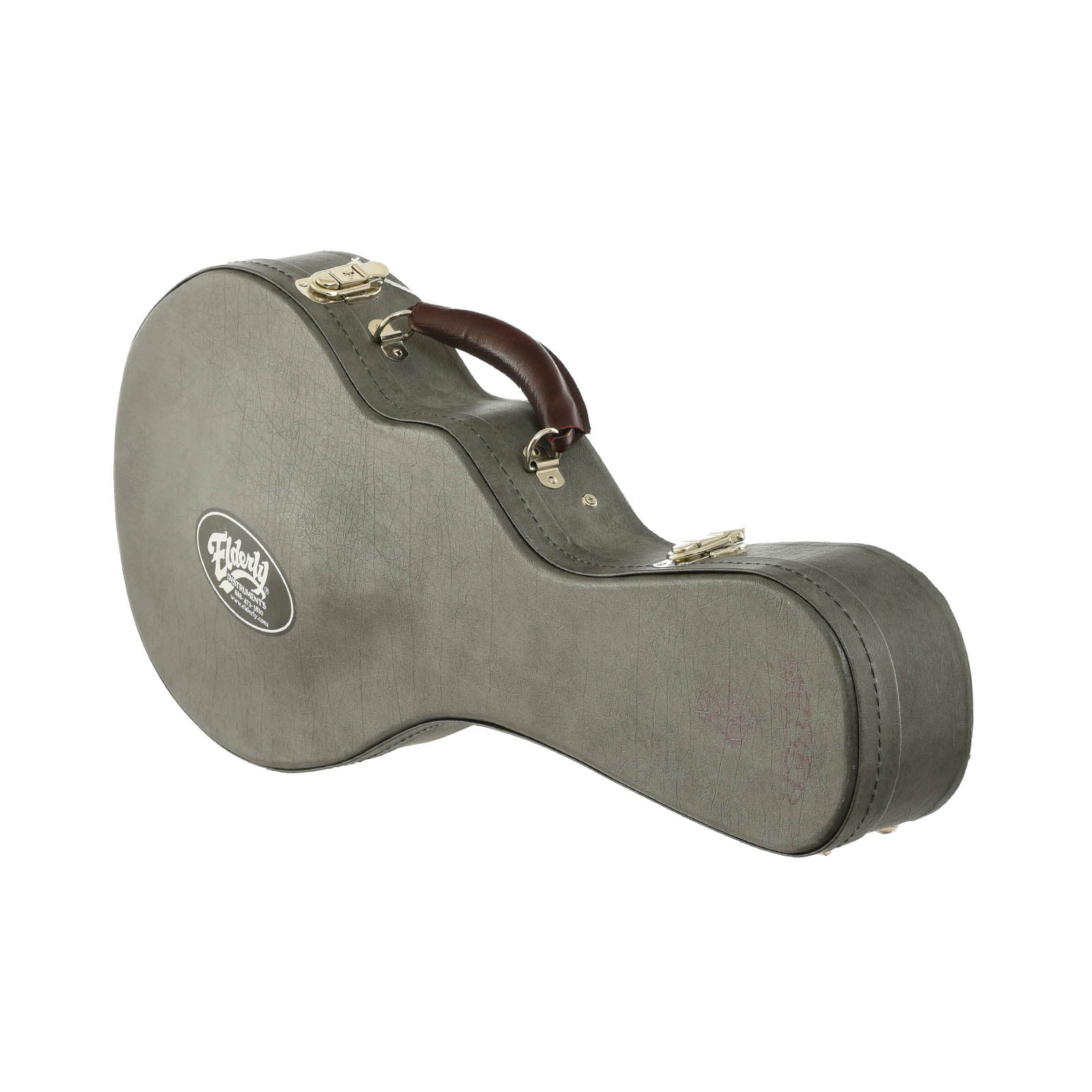 Custom high gloss sunburst top finish with gloss sunburst finished flamed maple back, sides, and neck, ivoroid-bound top, (carved) Adirondack spruce top, tone bar braces, f-holes, ebony fretboard, custom pearl diamond inlays, 24 frets, adjustable traditional style bridge, chrome-plated Weber tailpiece, ebony peghead overlay with pearl logo and Celtic knot inlays, 4-on a-plate tuners with pearloid buttons, 1-3/16" nut, 14" scale, with grey OHSC (silver lining), on consignment