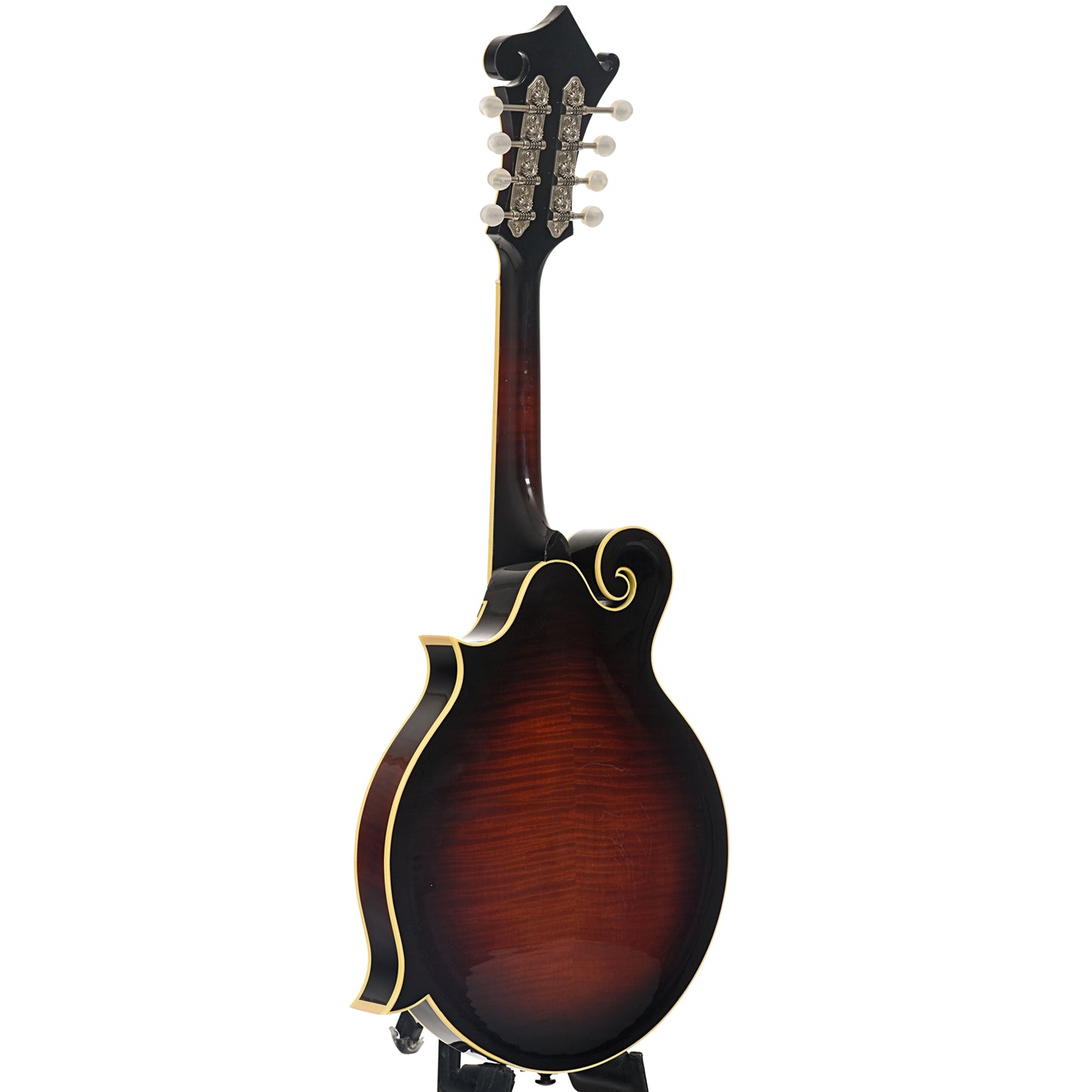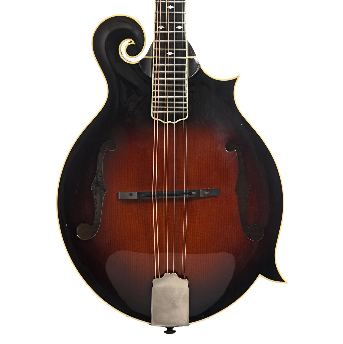 This exquisite Bruce Weber-signed mandolin features a gloss dark sunburst finish on a double-bound 2-point F body with a carved spruce top and tone bar bracing. The flame maple back, rims, and neck add to its visual appeal. Features include a bound ebony fingerboard with pearl diamond inlays and an ebony Brekke bridge. Original hard shell case. Built in Montana, USA.