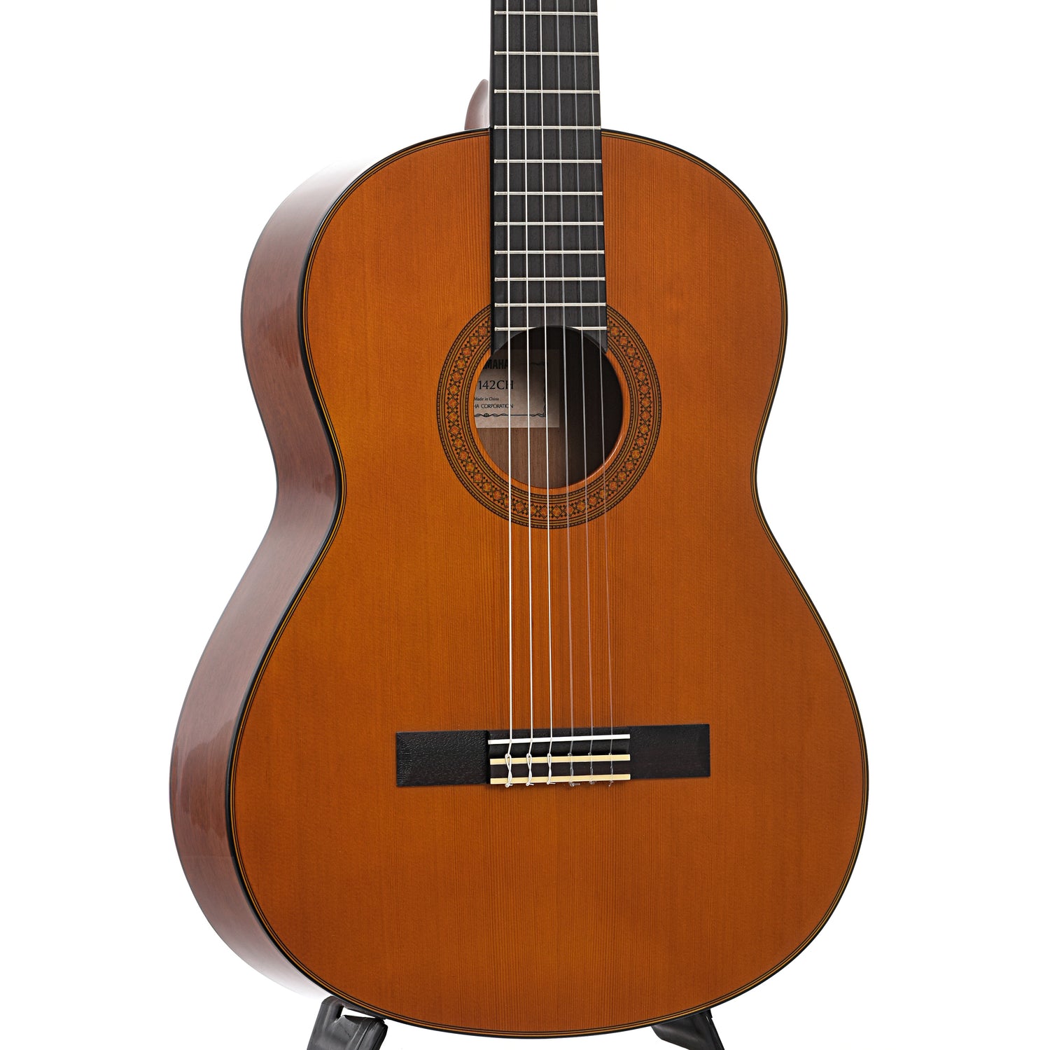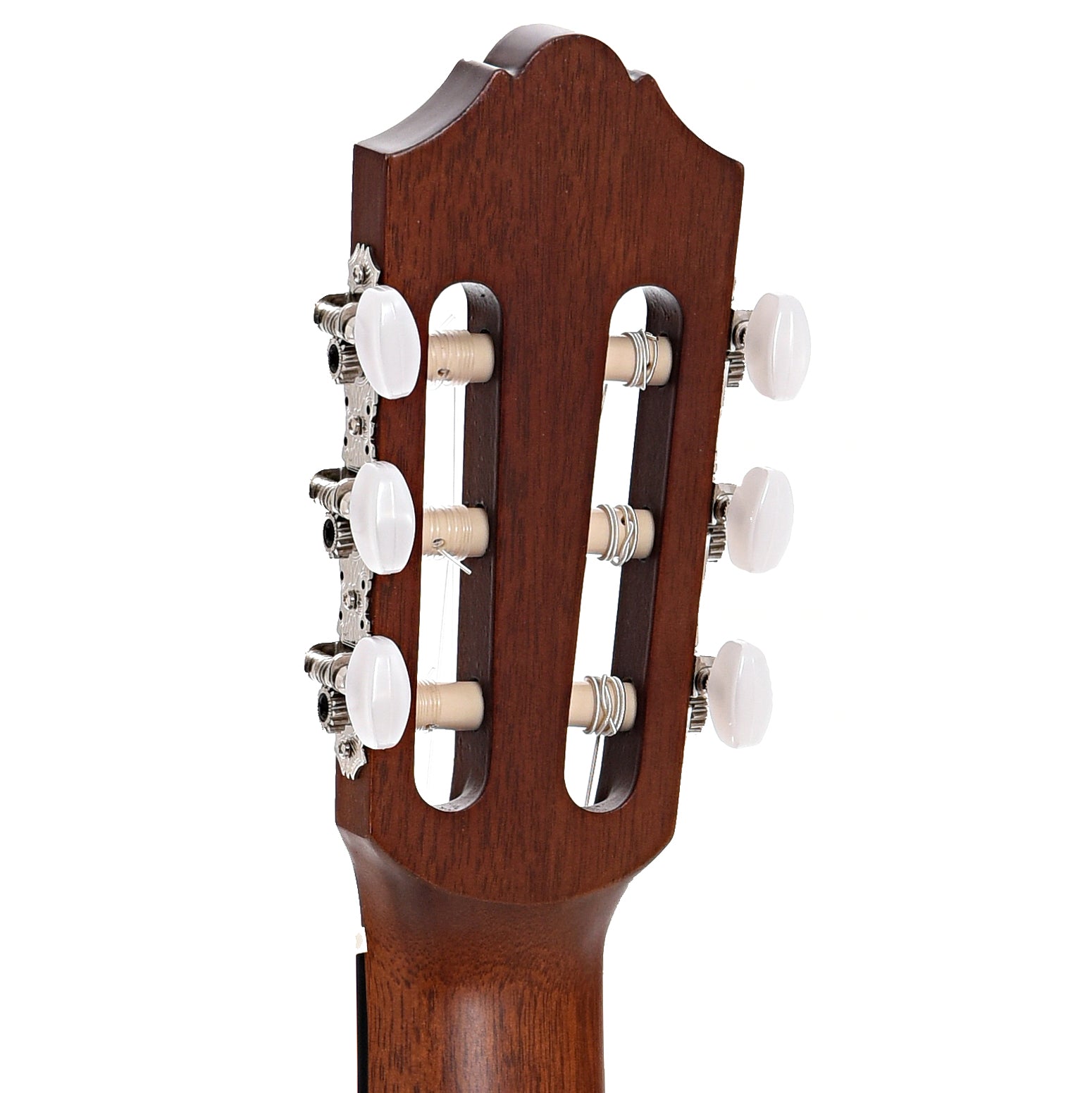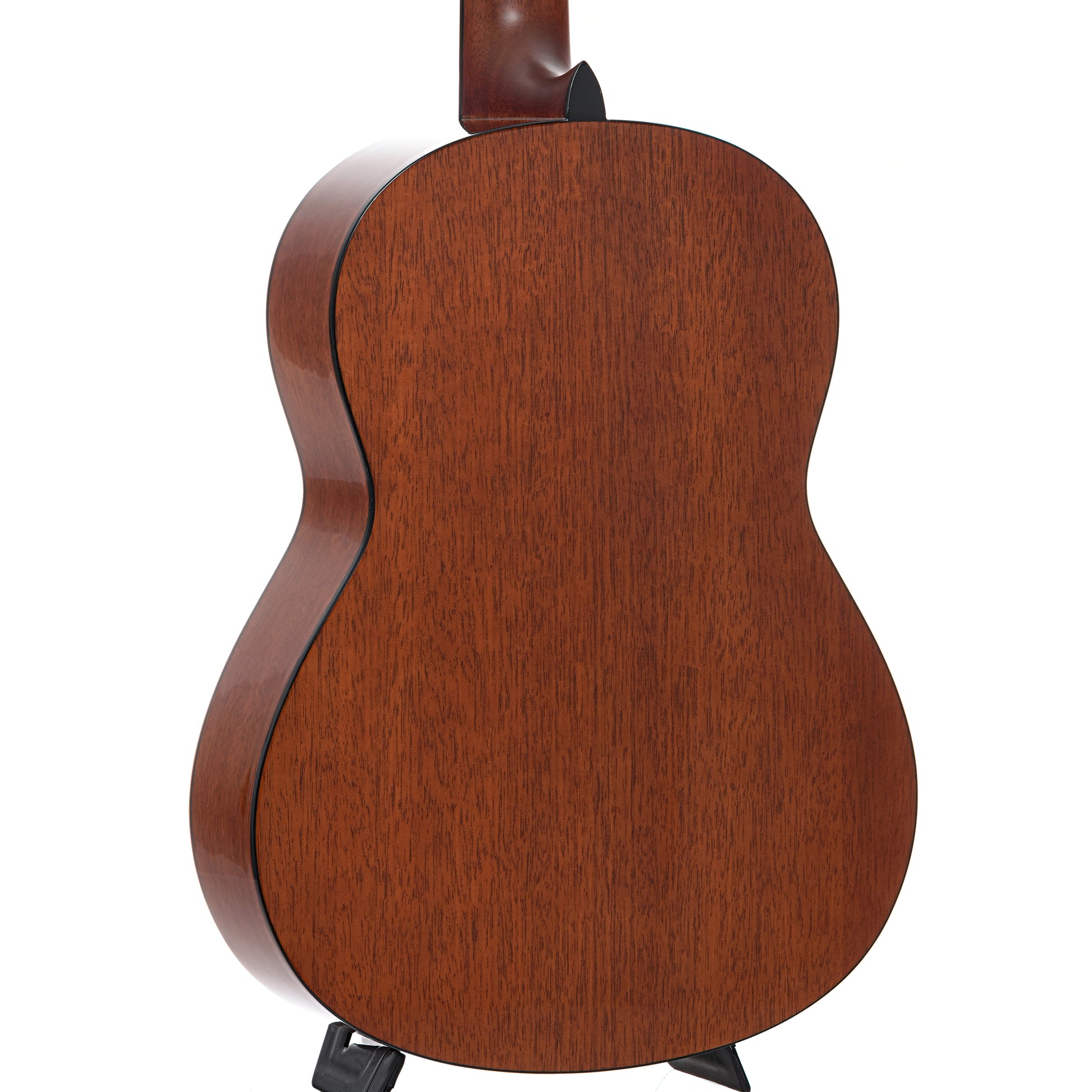 Solid cedar top, laminated nato back and sides, rosewood fingerboard and bridge, 2-1/16" nut width, 650mm scale length, chrome tuners, black and white body binding, gloss natural finish.