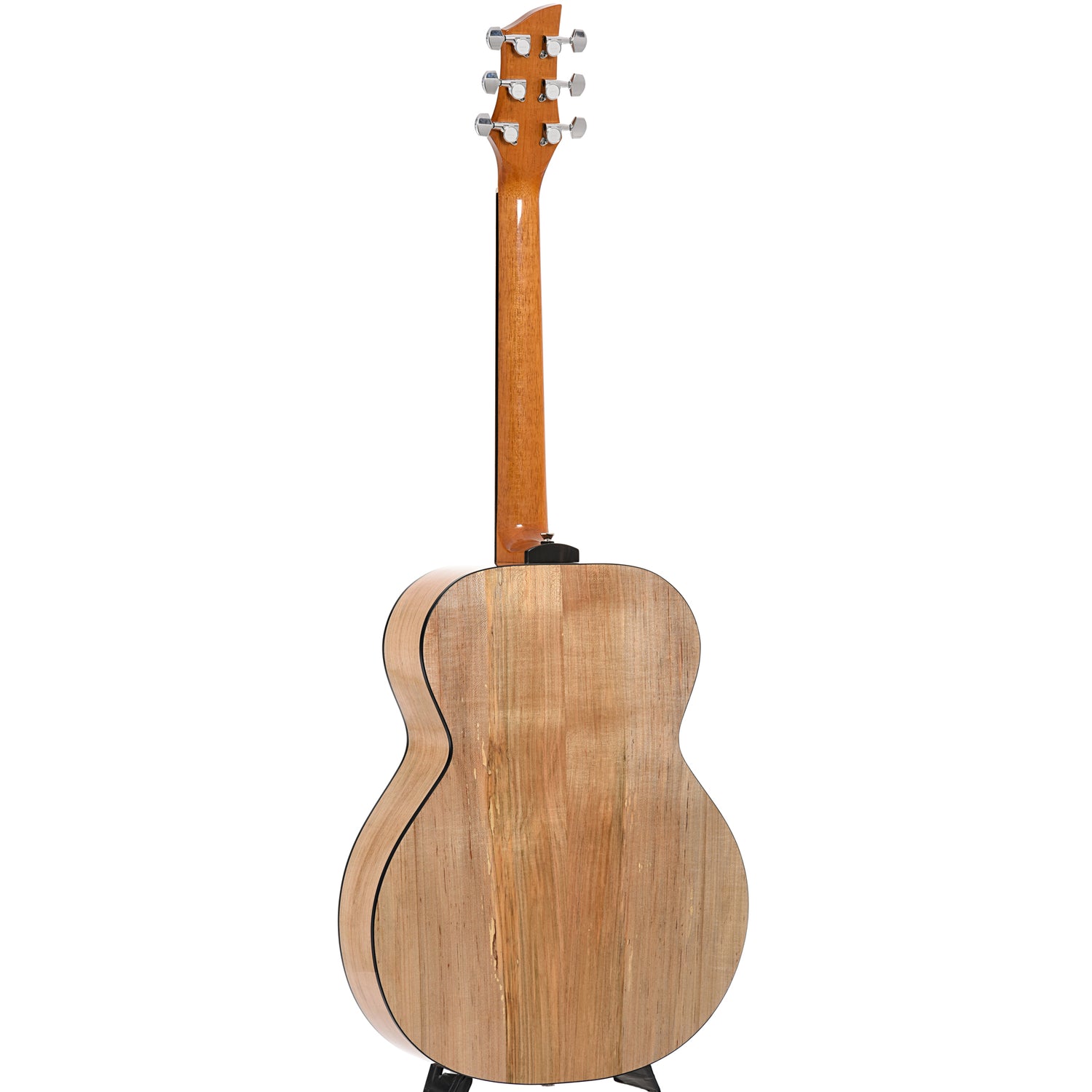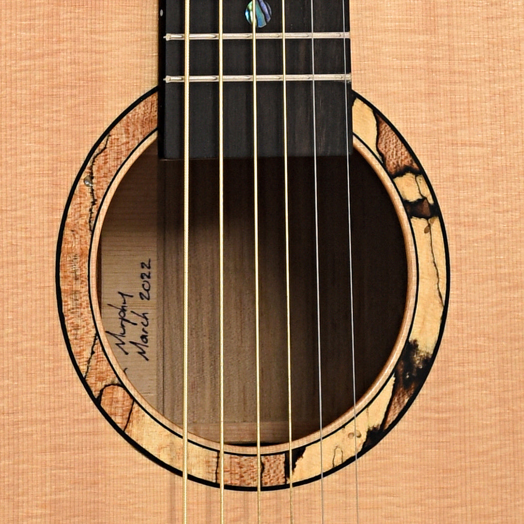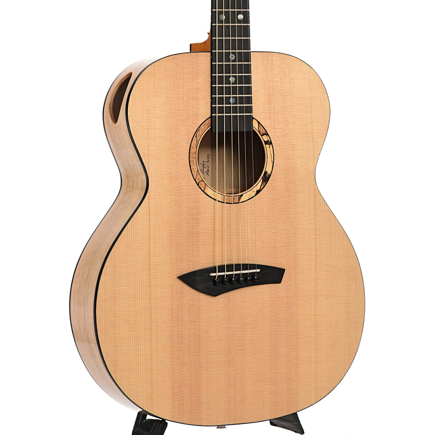New, but shopworn (small fingernail trail on top treble side) Tonally balanced and visually appealing. The Zamar Instruments Journeyman OM provides a warm sound with clarity thanks to its combination of a solid spruce top, maple back & sides and a side sound port. The Fishman pickup system makes it ready for the studio and the stage.