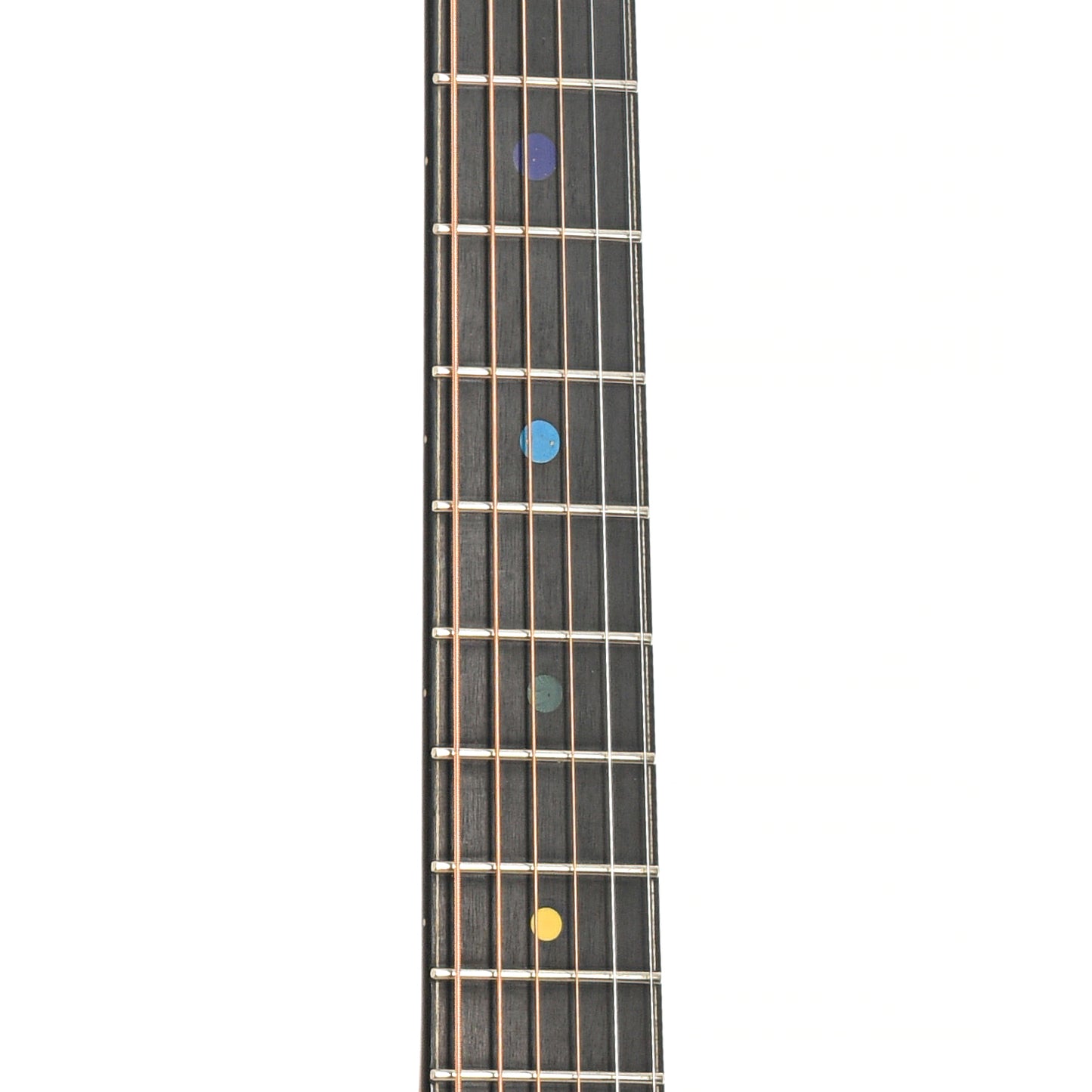 - Striped ebony peghead overlay, gold purfling, logo inlay